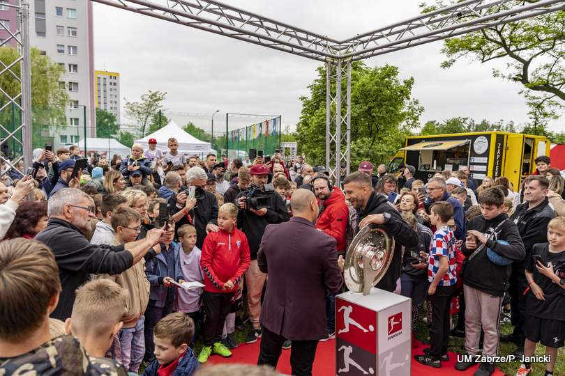 – Nie ma co ukrywać, że miałem swój udział w tej lokalizacji. W Bundeslidze mam status gwiazdy i po prostu im powiedziałem, że to musi być Zabrze. Bardzo się cieszę, że powstają takie miejsca. Sam zaczynałem grać w dużo gorszych warunkach, po prostu na ulicy – mówił Lukas Podolski, który podkreślił, jak ważne dla dzieci i młodzieży jest budowanie niezbędnej infrastruktury. Dzięki temu najmłodsi zyskali w Zabrzu kolejne boisko, na którym mogą szlifować swój piłkarski talent. W ramach projektu powstał również okolicznościowy mural.