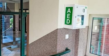 Defibrylator AED w holu zabrzańskiej Komendy Policji. Urządzenie będzie dostępne całą dobę11 czerwca 2021