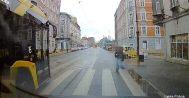 Pieszy wchodzi na pasy, autobus podejmuje manewr omijania. Groźna sytuacja na ulicy...15 stycznia 2025