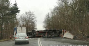 Wywrócony TIR zablokował DK 88. Kolejne zdarzenie drogowe w rejonie węzła z A1 (FOTO)17 stycznia 2023