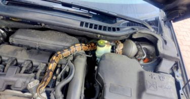 Pyton królewski schował się pod maską samochodu w Zabrzu. Zwierzę wydobyli strażacy z PSP30 sierpnia 2022
