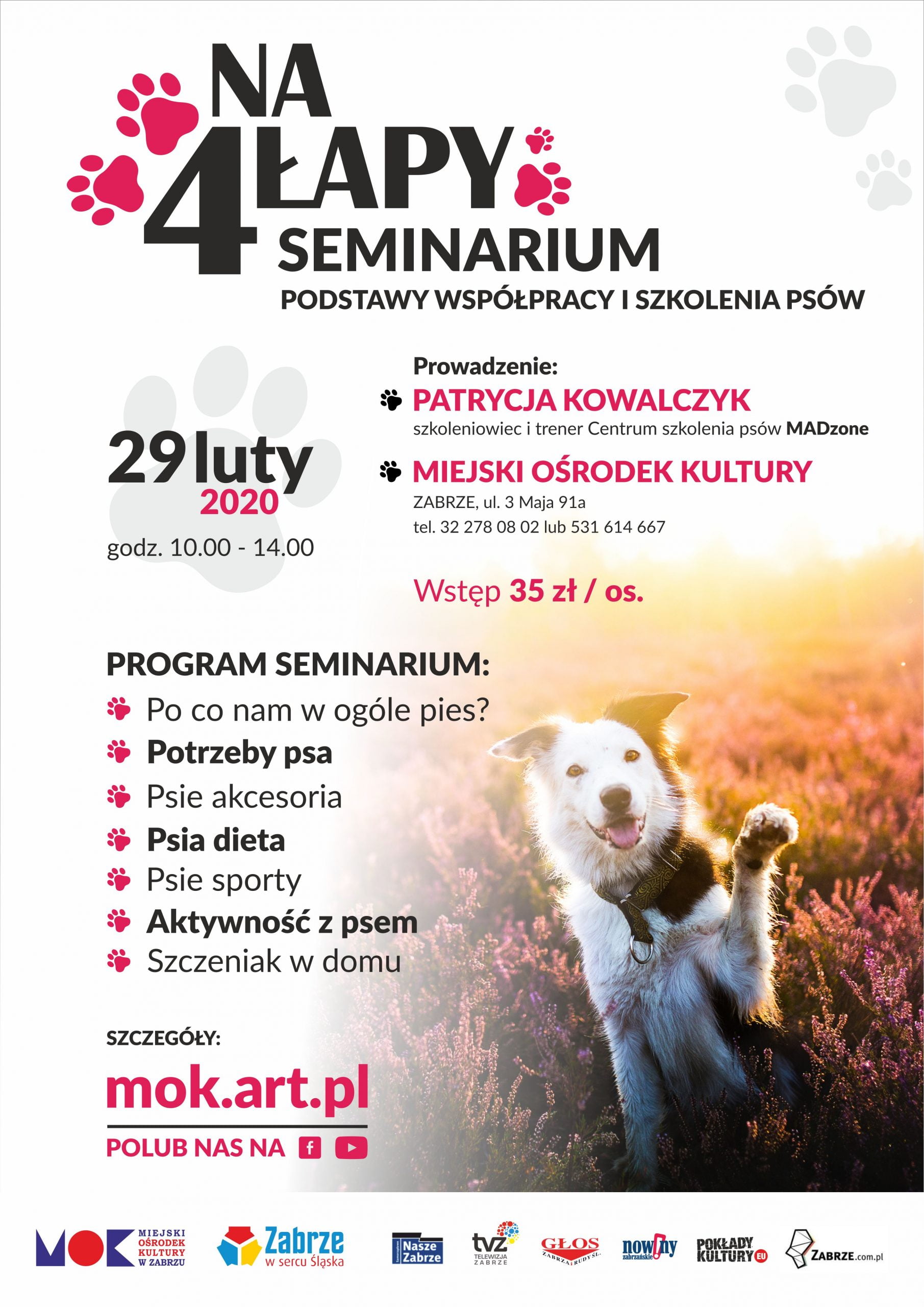 Miejski Ośrodek Kultury w Zabrzu rozpoczyna cykl spotkań i imprez pod hasłem „Na 4 łapy”. W ramach zaplanowanych wydarzeń odbędą się seminaria dla miłośników czworonogów.