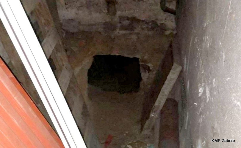 W trakcie sprawdzenia pomieszczeń domu, policjanci zauważyli w łazience małe okno, przez które można było dostać się do przylegającej do budynku stodoły. Kryminalni przeszli przez okno i sprawdzili stodołę, w której znaleźli wykutą w fundamentach dziurę, prowadzącą pod dom.