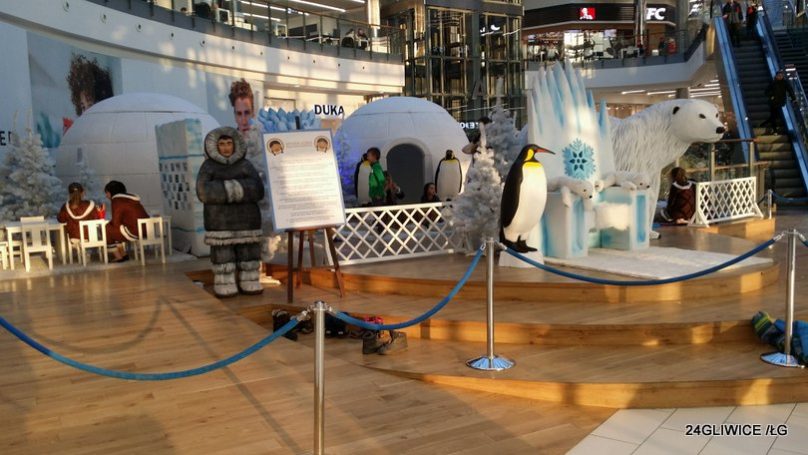 [perfectpullquote align=”full” bordertop=”false” cite=”” link=”” color=”” class=”” size=””]Na początku wyprawy dzieci zostaną ubrane w eskimoskie stroje, a wszyscy chętni uczestnicy będą mogli podejść do odpowiednio przygotowanego stanowiska, gdzie zostaną dodatkowo ucharakteryzowani. [/perfectpullquote]Na wystawie będzie można zobaczyć: igloo z efektem zorzy polarnej, igloo z lodowymi skamienielinami, magiczny przerębel, ścianę edukacyjną z fotografiami z dalekich podróży, ogromną lodową rzeźbę, ogromnego niedźwiedzia polarnego, a także arktyczne pingwiny.