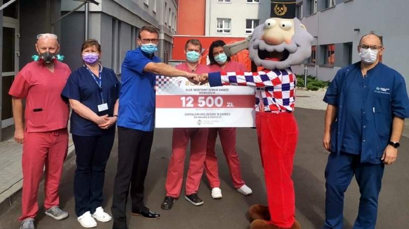 W miniony czwartek klubowa maskotka pojechała do szpitala w Biskupicach, by oficjalnie wręczyć na ręce Prezesa Zarządu placówki – dr n. med. Mariusza Wójtowicza – czek na 12,5 złotych. Taką właśnie kwotę zabrzański Górnik przekaże szpitalowi na walkę z pandemią COVID-19.