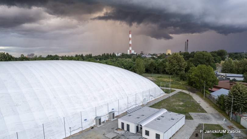 W powstałym przy ul. Rataja imponującym obiekcie sportowym trwają ostatnie działania porządkowe. Zabrzańska młodzież zyska kolejne boisko, tym razem zadaszone halą pneumatyczną (o wymiarach 115 m x 74 m) z nawierzchnią ze sztucznej trawy.