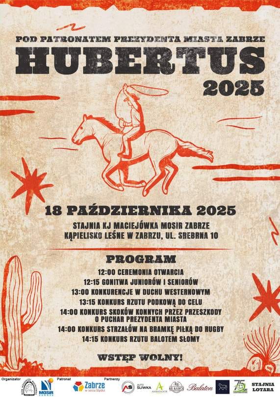 Na terenie stadniny Klubu Jeździeckiego Maciejówka MOSiR Zabrze przy ul. Srebrnej 10 odbędzie się tradycyjne święto miłośników koni – Hubertus 2025. Wydarzenie zaplanowano na sobotę, 18 października (termin zmieniony przez organizatora).