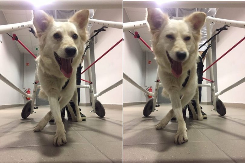 Cierpiąca na czterokończynowe porażenie Agnes – trzyletnia kundelka – wreszcie może zacząć się samodzielnie przemieszczać.