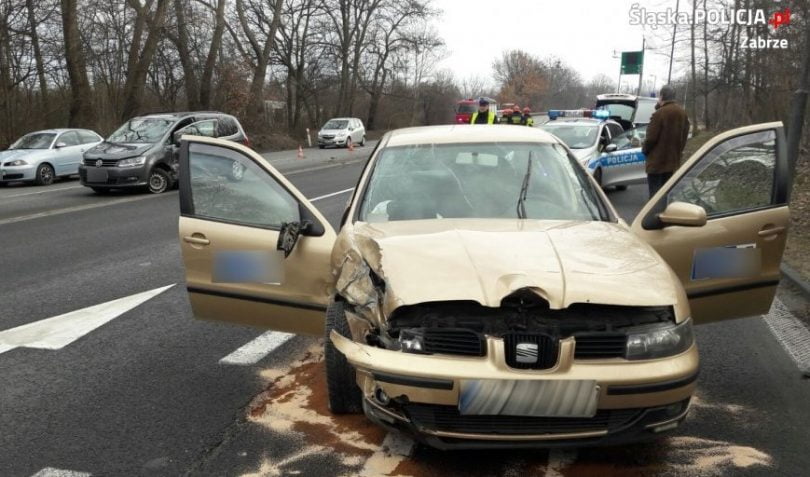 Do zdarzenia doszło około 8.30 na 25 km drogi krajowej 88. 65-letni kierujący volkswagenem, jadąc w stronę Gliwic, chciał zjechać w zjazd w ulicę Mikulczycką, który znajdował się po drugiej stronie czteropasmowej drogi. W tym celu w miejscu niedozwolonym, z prawego pasa zaczął wykonywać manewr zawracania i doprowadził do zderzenia z prawidłowo jadącym w tym samym kierunku lewym pasem seatem.
