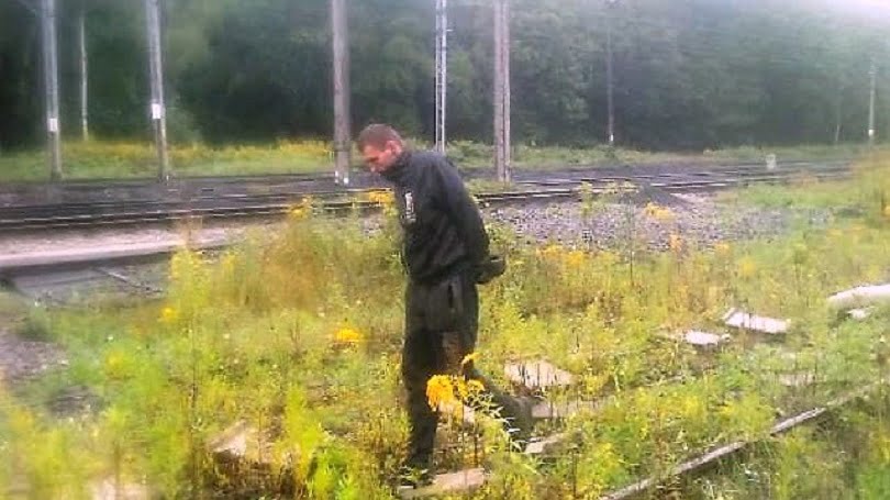 Mężczyzna uchwycony na zdjęciu jest podejrzewany o kradzież elementów infrastruktury kolejowej. Policja prosi o pomoc w ustaleniu jego tożsamości.