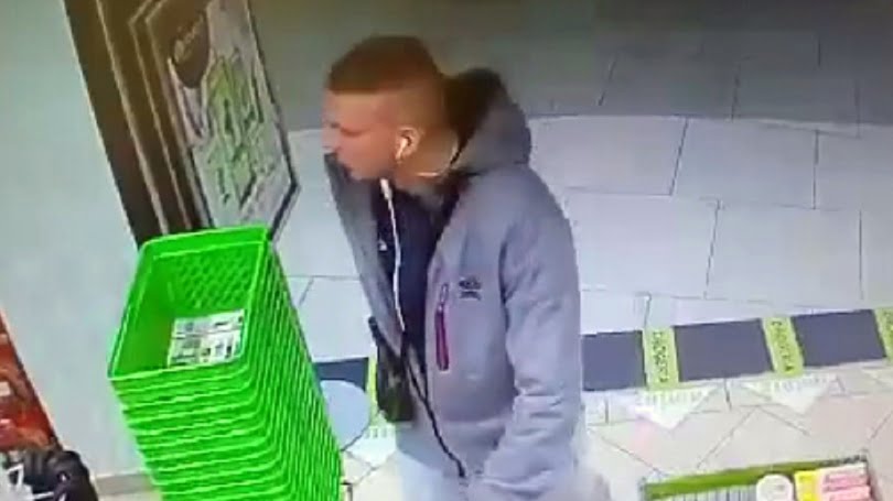 Na zdjęciach z monitoringu zainstalowanego w centrum handlowym Platan widać mężczyznę podejrzanego o kradzież. Policji nie udało się dotychczas ustalić jego tożsamości.