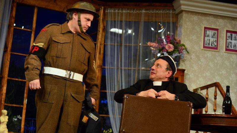 „O co biega?” w reżyserii Marcina Sławińskiego to klasyczna brytyjska farsa, która od 1945 roku bawi widzów na całym świecie. Akcja spektaklu dzieje się w czasie II wojny światowej w małym miasteczku położonym gdzieś na angielskiej prowincji.