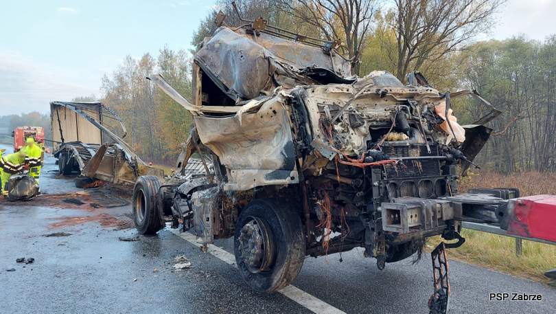 – Działania zastępów PSP polegały na zabezpieczeniu miejsca zdarzenia oraz szybkim opanowaniu rozprzestrzeniającego się ognia, gdyż strażacy otrzymali informację, iż w samochodzie ciężarowym może znajdować się osoba poszkodowana. Po opanowaniu ognia natrafiono na zwłoki prawdopodobnie kierowcy samochodu ciężarowego. Przez cały okres działań ratowniczo-gaśniczych autostrada A4 była nieprzejezdna – przekazuje st. kpt. Wojciech Strugacz, rzecznik KM PSP Zabrze.