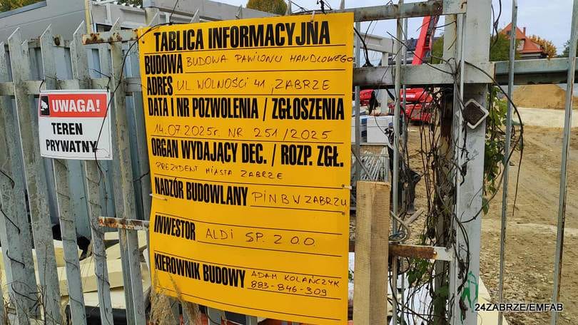 ALDI już oficjalnie informuje, że realizuje nową inwestycję na terenie Zabrza – od strony ulicy Wolności zawieszono banner. Do tej pory w mieście działały trzy placówki tej sieci handlowej – przy ulicach Miarki, Gdańskiej i Wolności (500).