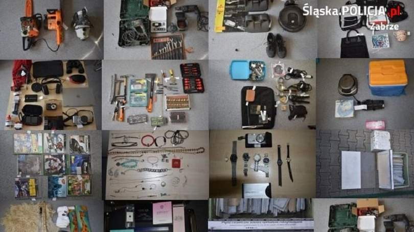 Podejrzani zabierali z nich dosłownie wszystko, co wpadło im w ręce – były to m.in. elektronarzędzia, narzędzia, rowery, sprzęt elektroniczny i AGD, biżuteria, monety i zegarki, materiały budowlane, buty, walizki, torby i plecaki, ozdoby świąteczne, krzesła ogrodowe, grill a nawet garnitury czy ozdobne figurki ogrodowe.