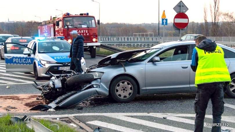 – Do wypadku z udziałem 38-letniego motocyklisty doszło o godzinie 18.00. Ze wstępnych ustaleń wynika, że wjeżdżający na wiadukt na ulicy Chudowskiej od strony Chudowa, 38-letni kierujący samochodem osobowym audi, chciał zjechać na autostradę w kierunku Wrocławia. W trakcie skrętu nie ustąpił pierwszeństwa jadącemu prosto 38-letniemu kierującemu motocyklem kawasaki i doprowadził do zderzenia. Wyniku wypadku motocyklista trafił do szpitala z licznymi złamaniami kończyn dolnych oraz ogólnymi obrażeniami ciała – przekazuje mł. asp. Sebastian Bijok, oficer prasowy KMP Zabrze.