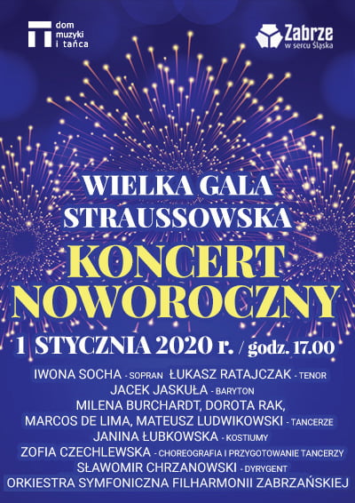 1 stycznia o godzinie 17:00 w Domu Muzyki i Tańca w Zabrzu rozpocznie się uroczysty Koncert Noworoczny.