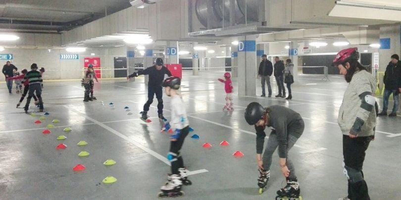 Doskonale sprawdził się również parking wewnętrzny Areny Zabrze, w którym odbyły się pierwsze zajęcia. Warsztaty podzielono na dwie części dostosowane do stopnia umiejętności jazdy na rolkach ich uczestników.