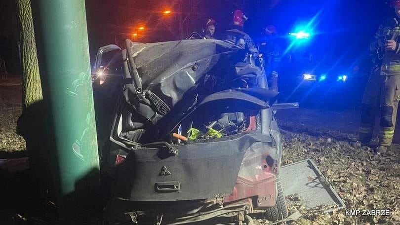 Kierowca Mitsubishi, z nieustalonych przyczyn utracił panowanie nad pojazdem, zjechał z jezdni, uderzając w drzewo i słup trakcyjny. 43-latek z poważnymi obrażeniami głowy, nóg i klatki piersiowej, w stanie ciężkim, został przewieziony do szpitala.