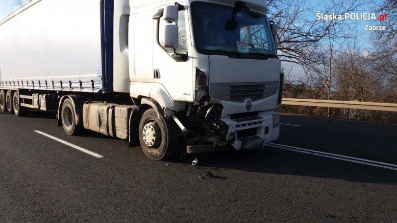 Do wypadku doszło na 25 km DK 88 w Zabrzu tuż za zjazdem w ul. Mikulczycką. 65-letni kierujący renault clio, jadąc prawym pasem w stronę Bytomia, chciał zawrócić. Doprowadził w ten sposób do zderzenia z jadącym lewem pasem w tym samym kierunku samochodem ciężarowym.