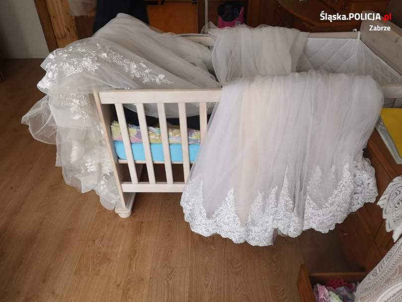 Po wejściu do mieszkania 21-latka zobaczyli porozwieszane wszędzie kreacje ślubne. Mężczyzna był zaskoczony wizytą policjantów i spał zmęczony po nocnej “robocie”.