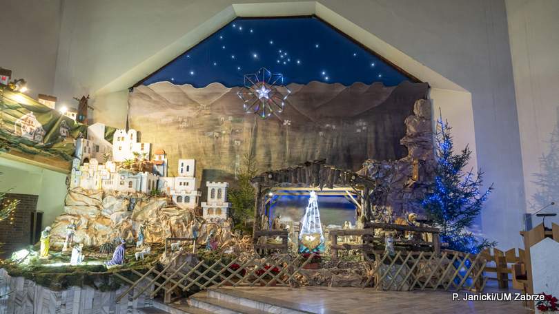 Wyjątkowe szopki zdobią też zabrzańskie kościoły. W galerii znajdziemy m.in. szopkę bożonarodzeniową w kościele św. Józefa, która zachwyca od prawie 50 lat. Prezbiterium wypełniają figury naturalnej wielkości. Szopkę kupiono do kościoła w 1974 r. w Rybniku, u rzeźbiarza Franciszka Masorza. W tle zamontowana jest duża panorama górskiego zimowego pejzażu z chatami autorstwa parafianina Tadeusza Kostrza.
