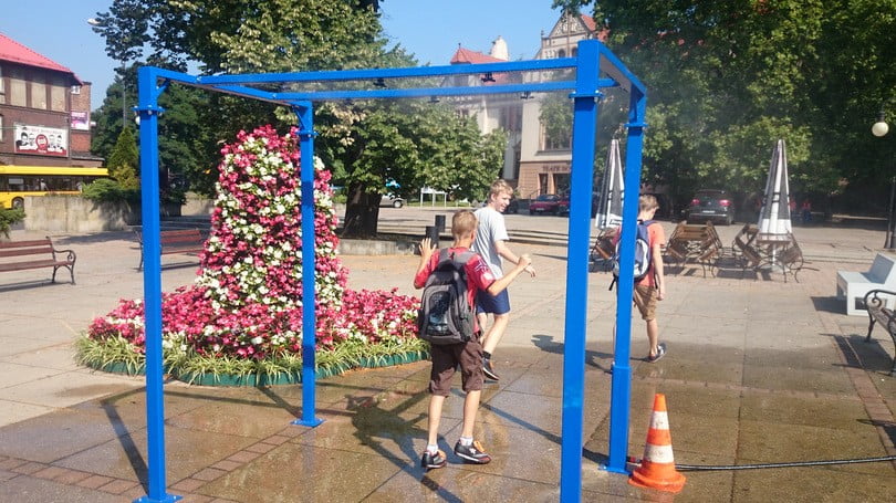 Po kilku dniach z pogodą poniżej plus 30 stopni Celsjusza, znów mamy iście afrykańską aurę. Na tę okoliczność miasto na powrót uruchomiło kurtyny wodne. Mgiełki schłodzą nas na placu Wolności i placu Teatralnym.