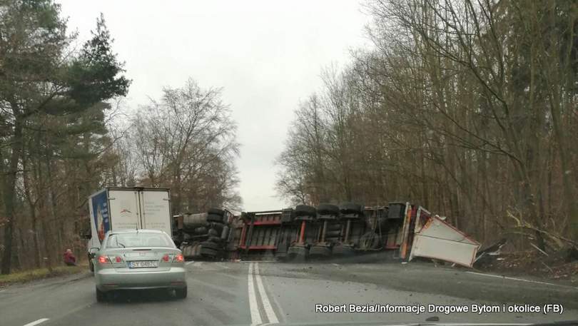 Kolejne w ostatnich dniach zdarzenie drogowe na DK 88, do którego doszło w rejonie zjazdu na autostradę A1. Około godziny 9:00 wywróceniu uległ tam samochód ciężarowy, który leży w poprzek drogi blokując wszystkie pasy ruchu.